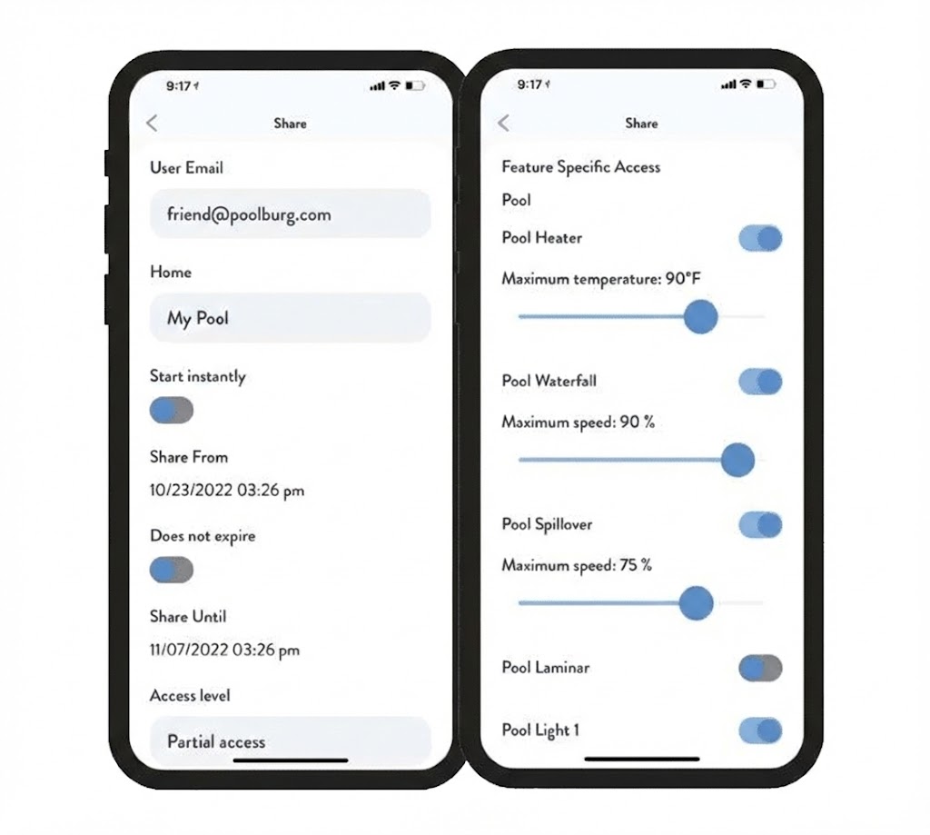 With Poolburg’s access control features, including a dedicated guest or rental mode, you can manage how and when pool features are used. This is ideal for short-term rentals, vacation properties, or households with teens helping prevent misuse, reduce wear, and protect your pool investment for years to come.