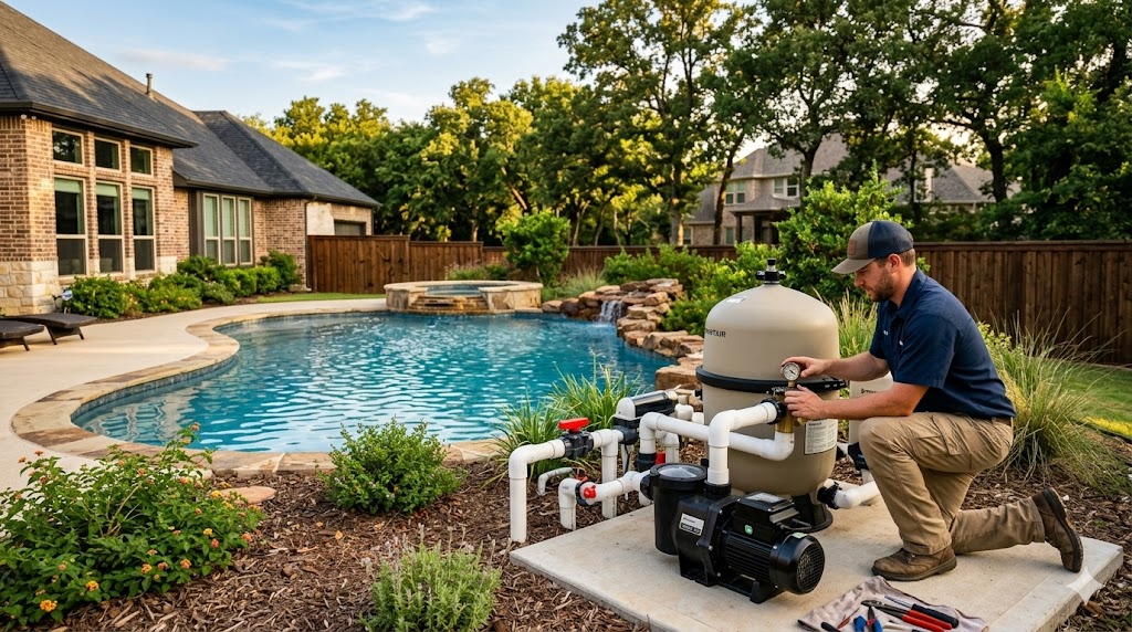 Pentair pool pump repair is the most common equipment call we get in North Texas, and it’s not because Pentair makes bad equipment — it’s because Pentair is on nearly every equipment pad in DFW. Builders across Frisco, Prosper, McKinney, Plano, and Allen install Pentair as their default brand, which means the majority of pool owners in this market are running Pentair pumps, heaters, filters, and salt systems.