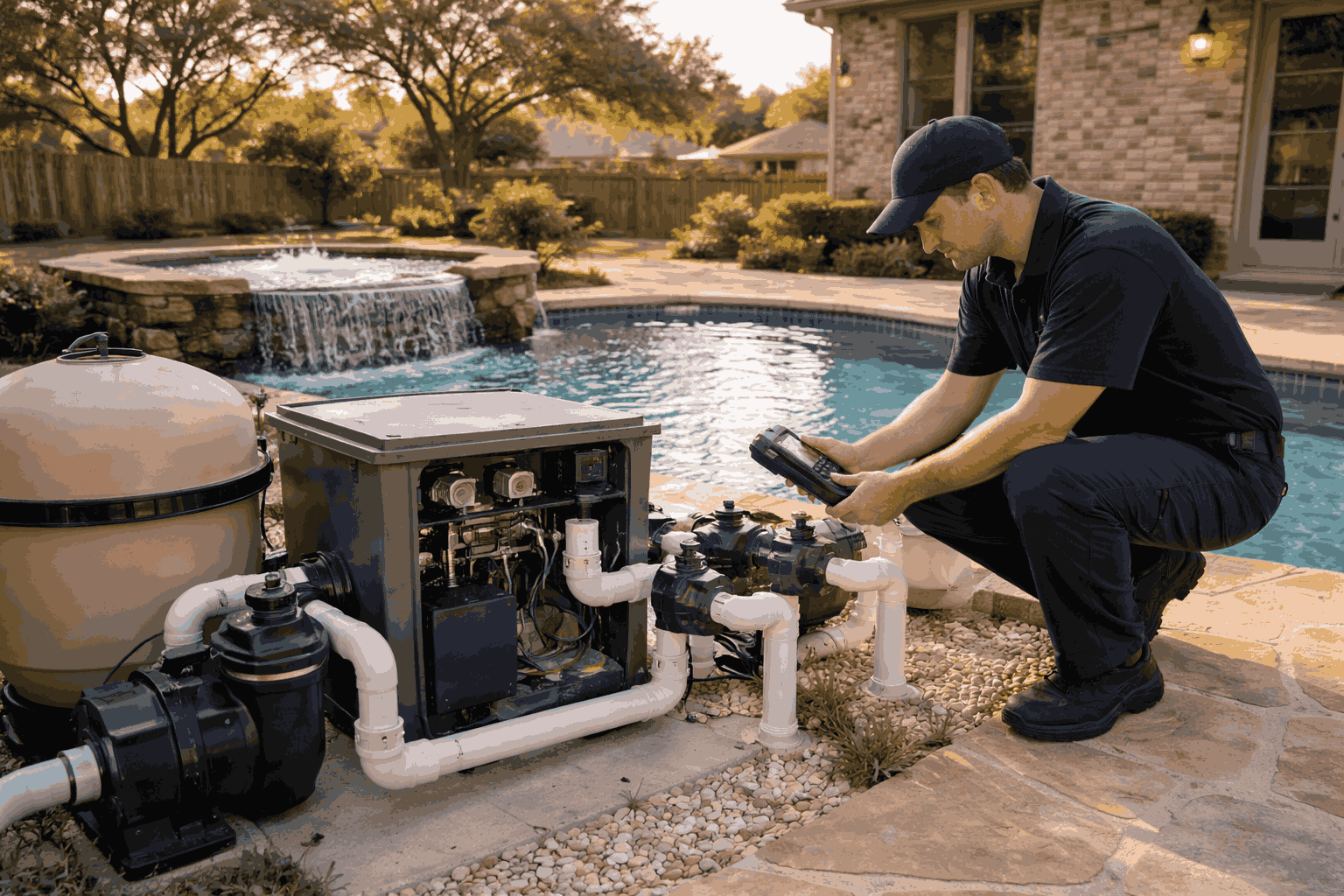 Labor in DFW averages $75 to $150 per hour for licensed pool and spa repair work. Getting both systems diagnosed and repaired in a single visit saves a second service call fee and gets everything running together properly.